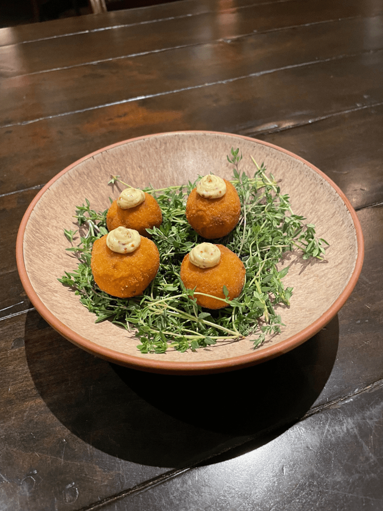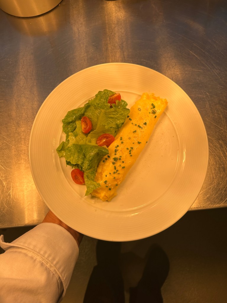 This week’s culinary lab centered on eggs, and the experience offered a deeper look into just how versatile and technique-dependent this ingredient truly is. Working across different preparations highlighted how small changes in heat, timing, and handling can completely transform both texture and flavor. From gentle poaching to the precise sealing of a Scotch egg, each method demanded close attention and gave me a better understanding of how eggs behave under varying conditions. The lab also reinforced foundational skills like temperature control, proper knife work during mise en place, and efficient station organization.