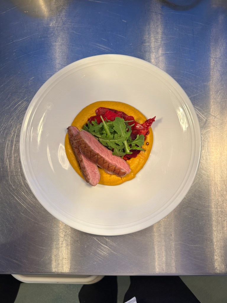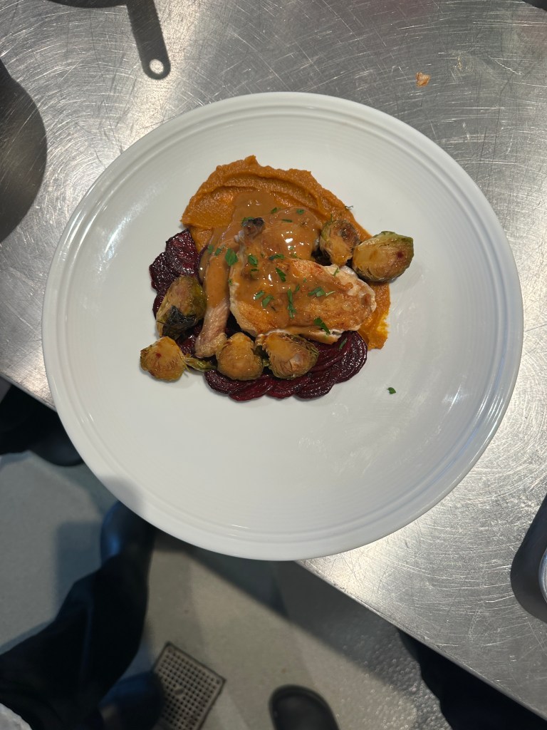 What stood out most was how each technique revealed a different functional property of eggs: coagulation in custards, binding in the Scotch eggs, aeration in whipped preparations, and emulsification in sauces. Practicing these side by side helped connect theory to application. Overall, the lab strengthened my ability to approach eggs not just as an everyday ingredient, but as a technical tool that can determine the success or failure of a dish.