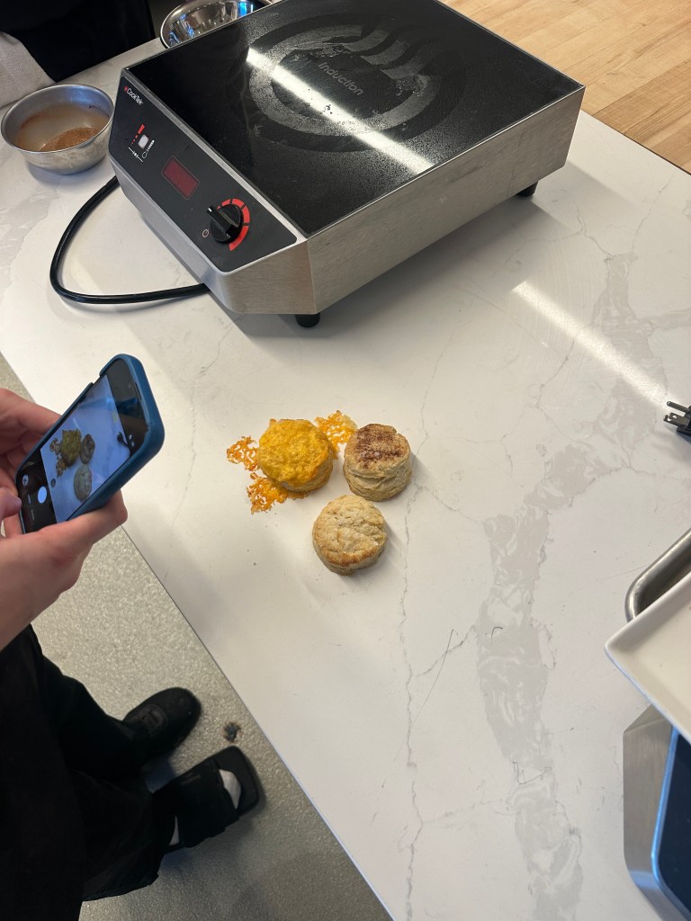 Another change we would make would be to have spare liquid available for the biscuit dough. We used our exact amount of buttermilk as needed from the recipe, but something I found while researching online is to have spare liquid on-hand to moisten a very dry dough (Velantini 2024).